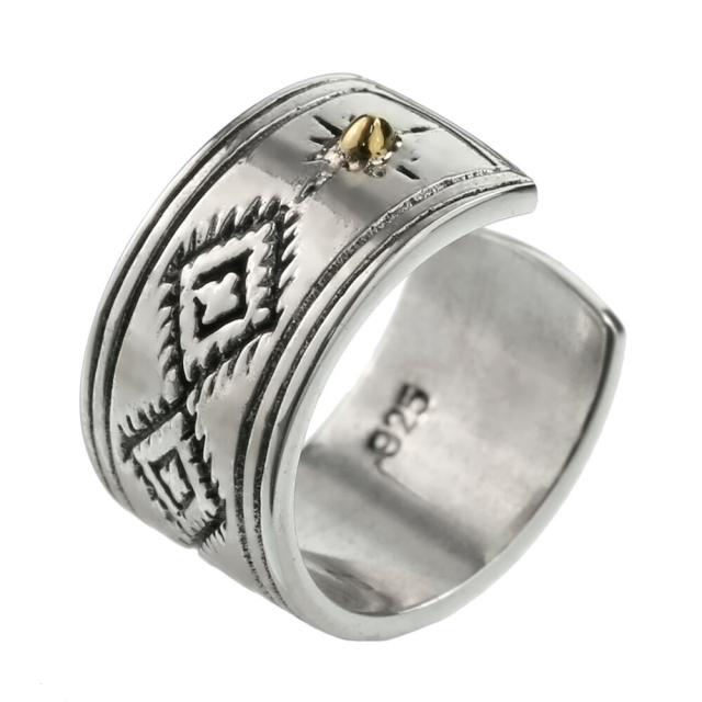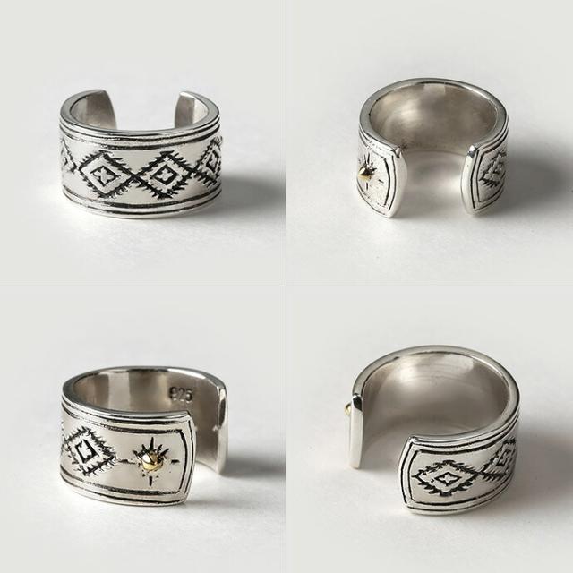 ネイティブ柄が彫金されたイヤーカフ。金色の真鍮を中心に埋め込んだサン(太陽)モチーフがアクセントになっています。着けるだけでファッションのアクセントになってくれそうなアクセ。シンプルなコーデとも相性抜群です。