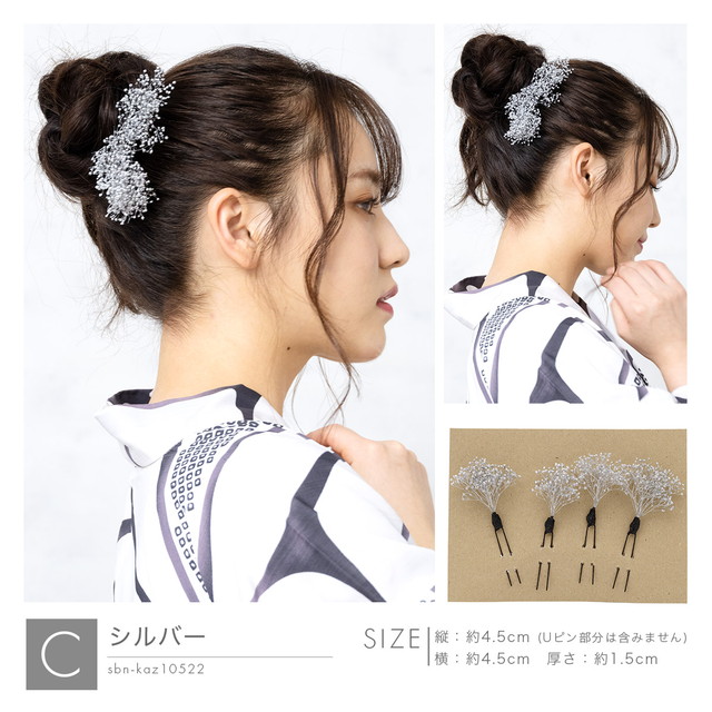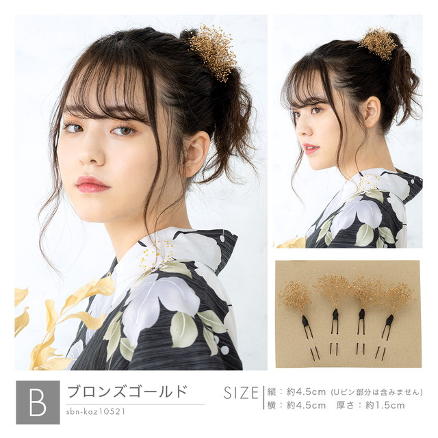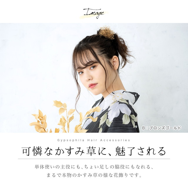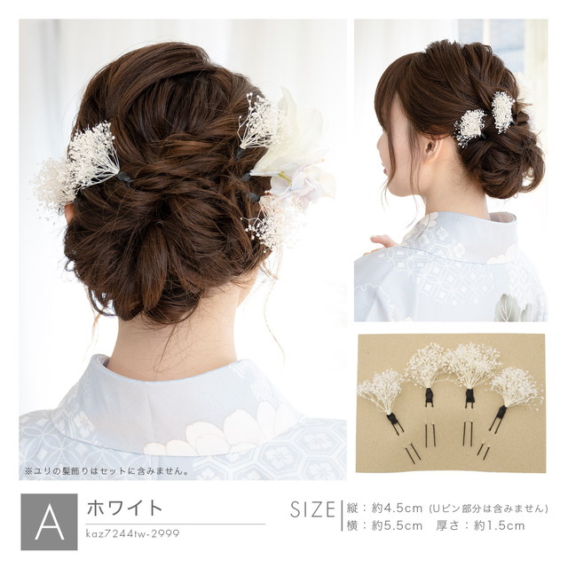 髪飾り ドライフラワー テイスト 成人式 かすみ草 卒業式 振袖 袴セット 花 フラワー ホワイト 白系 金 銀 小さい 小ぶり ちょい足し 髪留め 和洋兼用 送料無料【安価 安い】