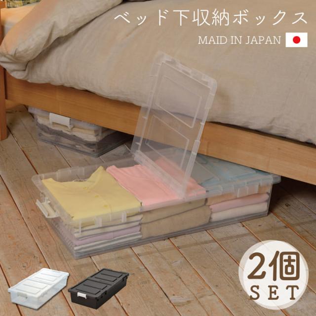 収納ボックス フタ付き ベッド収納 「ベッド下 収納ボックス 2個セット」 W39×D80×H16.5cm 日本製 収納ボックス キャスター付き ベッド 収納スペース 収納ボックス 大容量 ベッド
