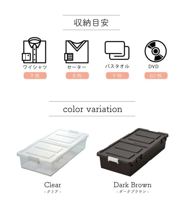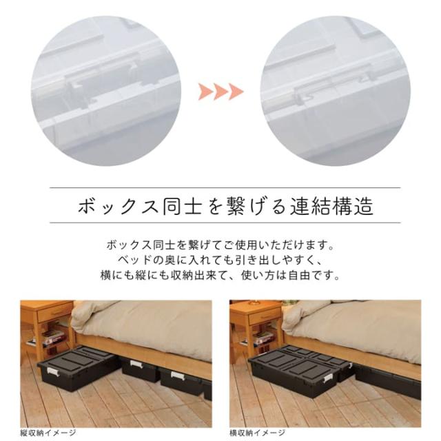 見逃さない!見えない空間! 連結可能なベッド下収納ケースが断然使いやすい! 安心の日本製。 必要なものだけを出せるハーフオープン式。 奥に入れても引き出しやすい連結構造。 転がしやすい方向に取り付けできるキャスター付きで、横にも縦にも収納できて使い方自由。 収納目安 ワイシャツなら約9枚 セーターなら約8枚 バスタオルなら約9枚 DVDなら約60枚 ※ 画面上のカラーはご使用ブラウザやモニターの設定により、実物とは若干異なる場合がございます。あらかじめご了承の上、ご注文をお願いいたします。 | |