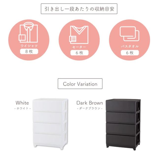 ゆったり収納してスマートに。 落ち着いた風合いのワイドタイプ収納ケース 中身を隠せるスッキリチェスト。 組み立て簡単。 スリムタイプと組み合わせて並列しても使用できる。 引き出し1段あたりの収納目安 ワイシャツなら約8枚 バスタオルなら約6枚 セーターなら約6枚 ※ 画面上のカラーはご使用ブラウザやモニターの設定により、実物とは若干異なる場合がございます。あらかじめご了承の上、ご注文をお願いいたします。 | |
