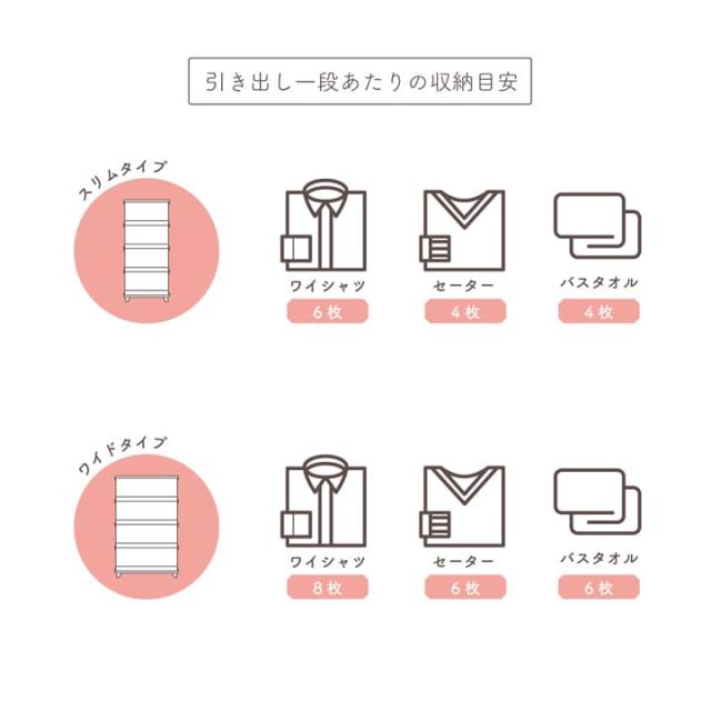 光沢を抑えたシックな質感と色合い。 スリムタイプとワイドタイプのセット 中身を隠せるスッキリチェスト。 組み立て簡単。 (ワイドタイプ) 引き出し1段あたりの収納目安 ワイシャツなら約8枚 バスタオルなら約6枚 セーターなら約6枚 (スリムタイプ) 引き出し1段あたりの収納目安 ワイシャツなら約6枚 バスタオルなら約4枚 ※ 画面上のカラーはご使用ブラウザやモニターの設定により、実物とは若干異なる場合がございます。あらかじめご了承の上、ご注文をお願いいたします。 | |