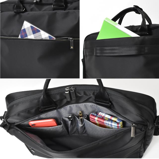 スマートな見た目ながらB4ファイルや15インチ以下のPCをしっかり収納でき、ビジネスシーンに最適なアイテムです。