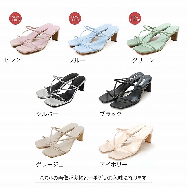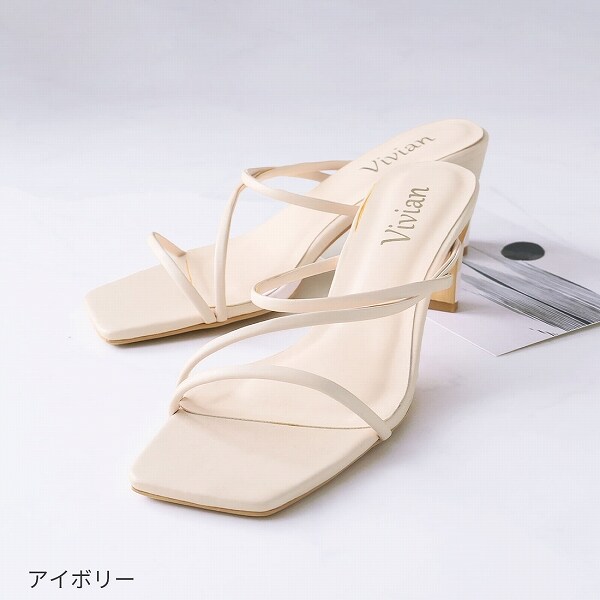 ヴィヴィアン(Vivian)/スクエアトゥアシメ華奢ストラップヒールサンダル