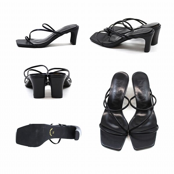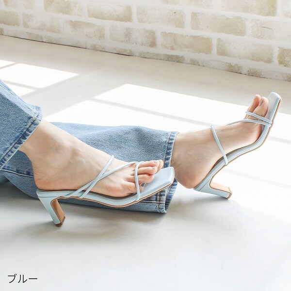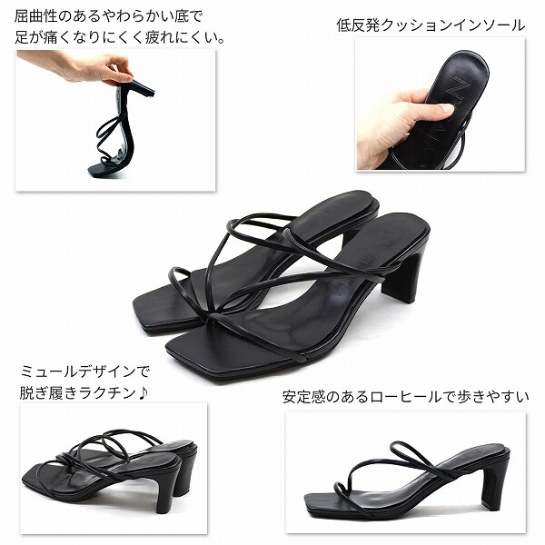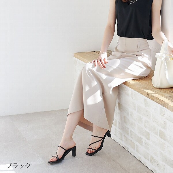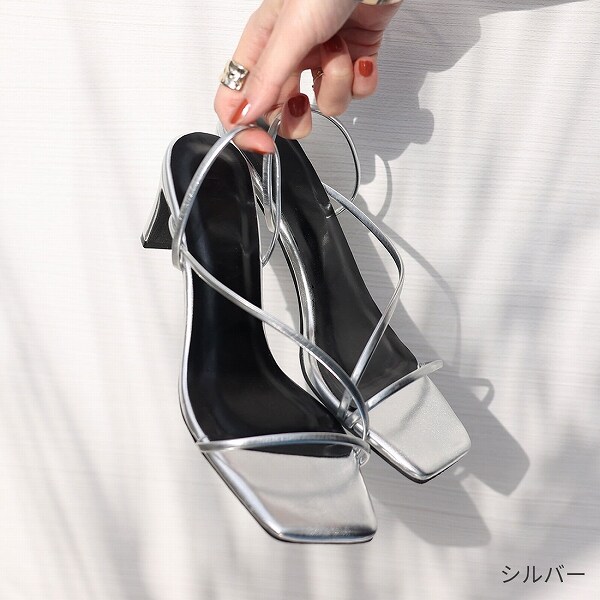 スクエアトゥアシメ華奢ストラップヒールサンダル