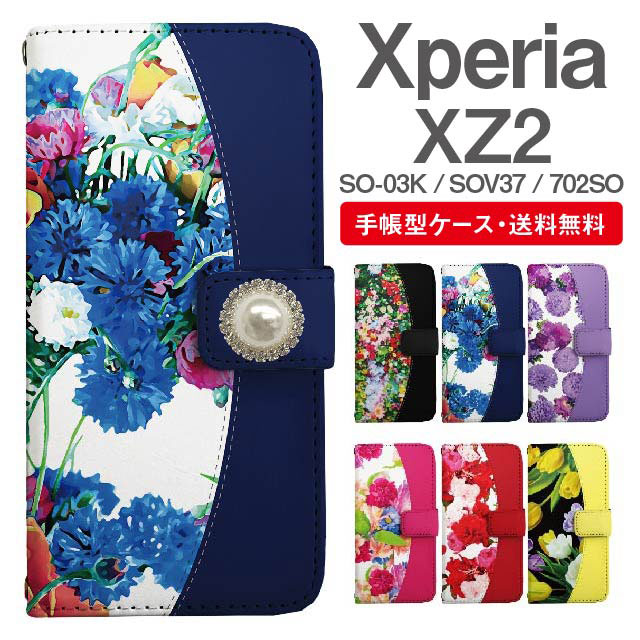 スマホケース 手帳型 Xperia XZ2 エクスペリア SO-03K SOV37 702SO 携帯ケース カバー 送料無料 花柄 フラワー ビジュー付き agesugi_ssm