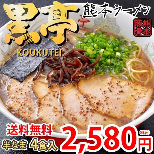 ラーメン 黒亭ラーメン 豚骨ラーメン 送料無料 4食 半なま麺 お取り寄せ お取り寄せグルメ 熊本ラーメン ご当地ラーメン