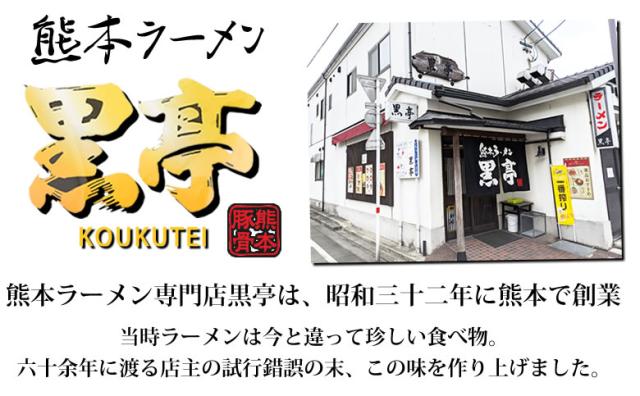 創業昭和32年の正統派。熊本ラーメン「黒亭」コクがあるのに後味あっさり!!熊本伝統の味をぜひ味わってください!