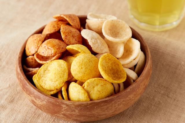 ■3種のチップス・醤油味:甘辛いクセになる醤油味で、おやつにもおつまみにもおすすめです!・しお味:シンプルな味わいですが、一口食べると止まらない! 一番人気の味です! ・カレー味:スパイシーで少し懐かしいカレー味で、年齢問わず手がでる美味しさです!