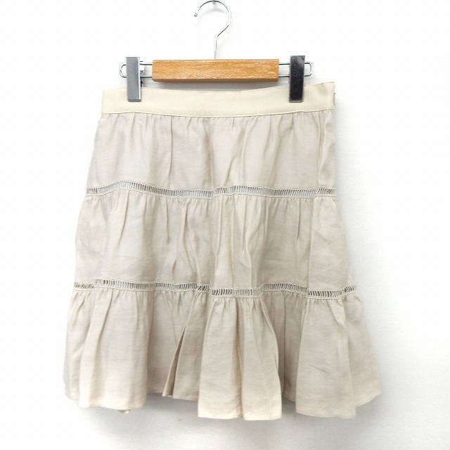 【中古】ジルスチュアート JILL STUART スカート 膝丈 フレア サイドジップ 麻 リネン 4 ベージュ /ST34 レディース