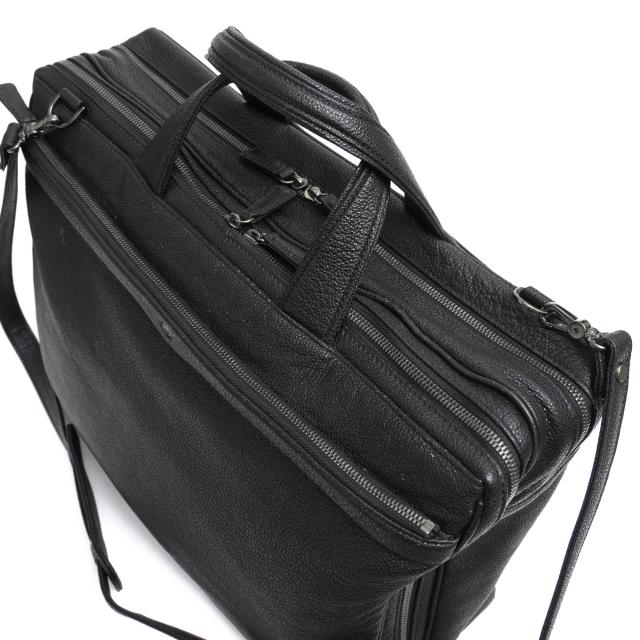 二槽式でオーバーナイトバッグとしても活用いただけるデザイン。A4サイズの収納が可能で、シボ感のある牛革を使用し高級感があります。小物ポケットも充実し、機能性と実用性を兼ね備えたビジネスバッグです。