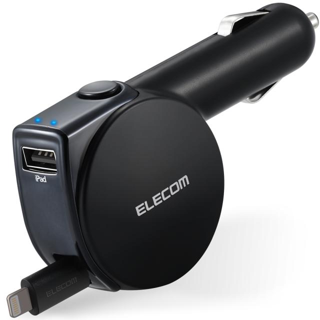 エレコム MPA-CCL04BK 最大24W(5V/4.8A)出力対応 Lightningケーブル一体型 巻取りDC充電器(ブラック)[MPACCL04BK] 返品種別A