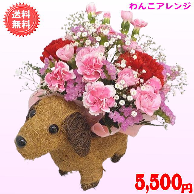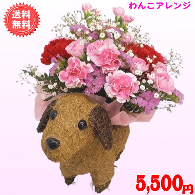 母の日 2026 カーネーション わんこアレンジ5,500円【送料無料】ネット特価!カーネーション 母の日ギフト 早割 50代 60代 70代 80代