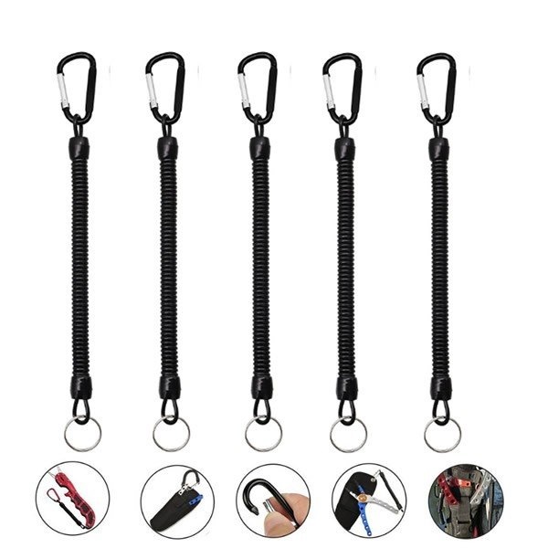 スパイラルコード くるくるコード 5本セット カラビナ付 落下 紛失防止 ストラップ アウトドア キャンプtecc-spcode5set