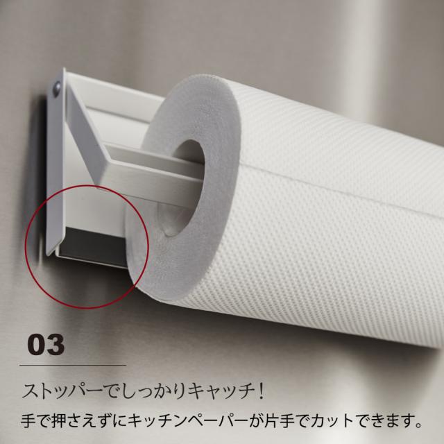 冷蔵庫に強力マグネットで簡単取り付け。片手でカットできるマグネットキッチンペーパーホルダーです。