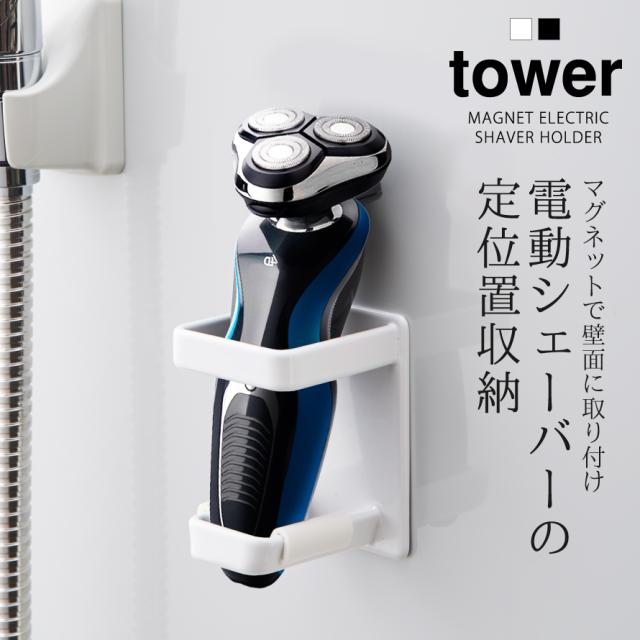 シェーバーホルダー マグネット tower タワー 山崎実業 バスルーム 浮かせる収納 ホワイト ブラック マグネット電動シェーバーホルダー タワー