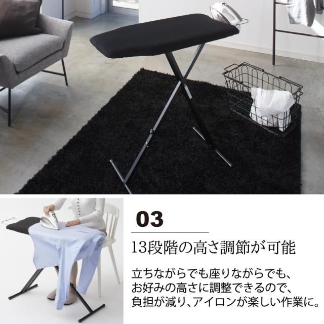 椅子に座ったり立ったりと好きなスタイルでアイロン掛けが行えます。