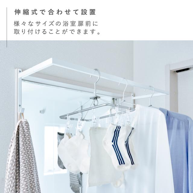 伸縮式なので様々なサイズの浴室扉前に取り付けることができます。