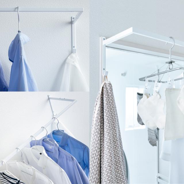 物干しスペースがちょっと足りないなと感じている方におすすめ!デッドスペースにちょい掛けスペースを確保できる物干しハンガーです。