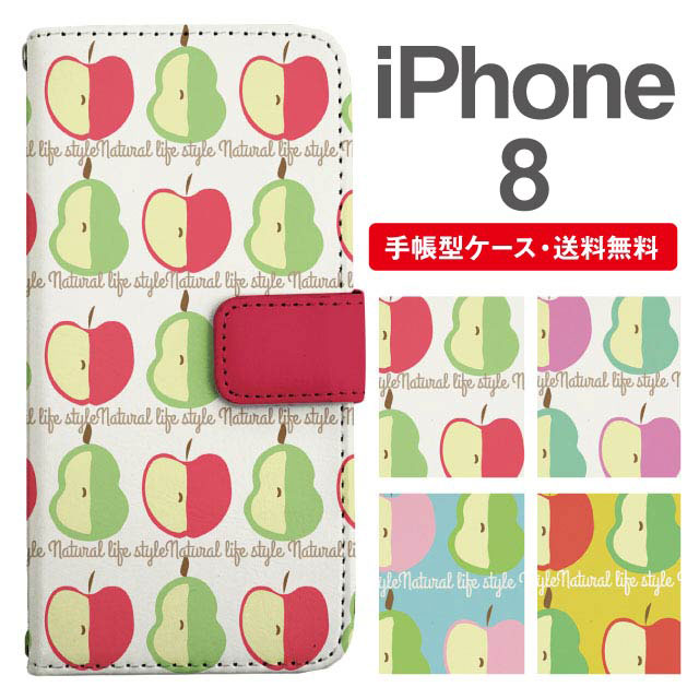 スマホケース 手帳型 iPhone8 アイフォン 携帯ケース カバー 送料無料 北欧 りんご 洋なし フルーツ agesugi_ssm
