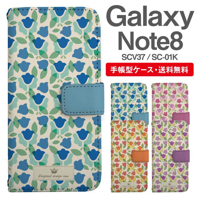 スマホケース 手帳型 Galaxy Note8 ギャラクシー SC-01K SCV37 携帯ケース カバー 送料無料 北欧 花柄 フラワー チューリップ agesugi_ssm
