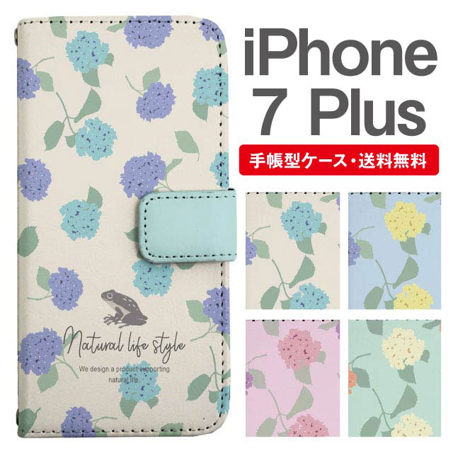 スマホケース 手帳型 iPhone7Plus アイフォン 携帯ケース カバー 送料無料 花柄 フラワー 紫陽花 アジサイ カエル 北欧 agesugi_ssm