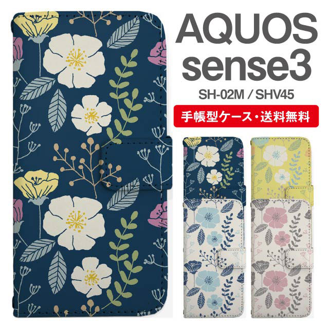 スマホケース 手帳型 AQUOS sense3 アクオス SH-02M SHV45 携帯ケース カバー 送料無料 北欧 花柄 フラワー agesugi_ssm