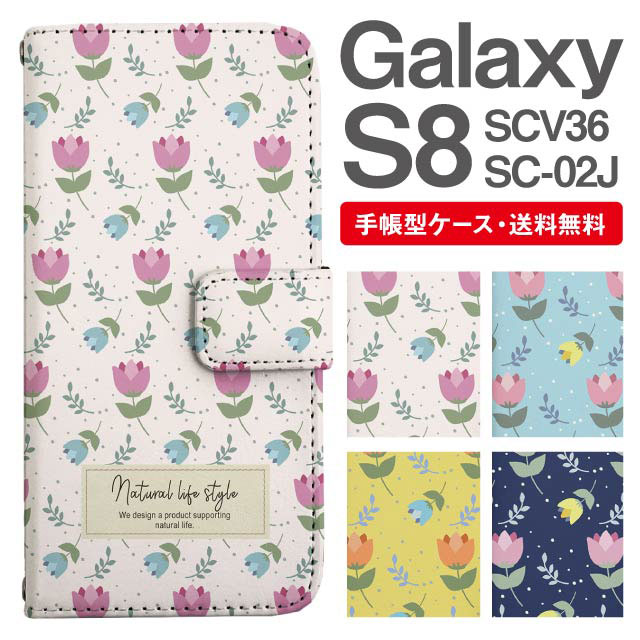 スマホケース 手帳型 Galaxy S8 ギャラクシー SC-02J SCV36 携帯ケース カバー 送料無料 北欧 花柄 フラワー チューリップ agesugi_ssm