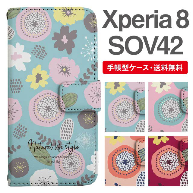 スマホケース 手帳型 Xperia 8 エクスペリア SOV42 携帯ケース カバー 送料無料 北欧 花柄 フラワー agesugi_ssm