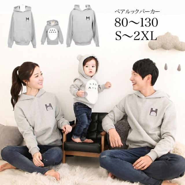 ペアルック パーカー 親子 トップス レディース メンズ 長袖 春 秋 冬 お揃い 服 夫婦 トレーナー ペア カップル ファミリー フード付き 耳付き 子供服 ベビー服 キッズ 家族 男の子 女の子 ワンポイント 可愛い ゆったり 大きいサイズ グレー