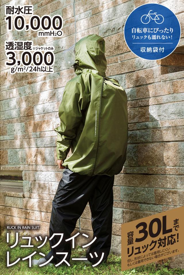 リュックインレインスーツ 上下セット | リュックインレインスーツ 上下セット ビッグサイズ |
