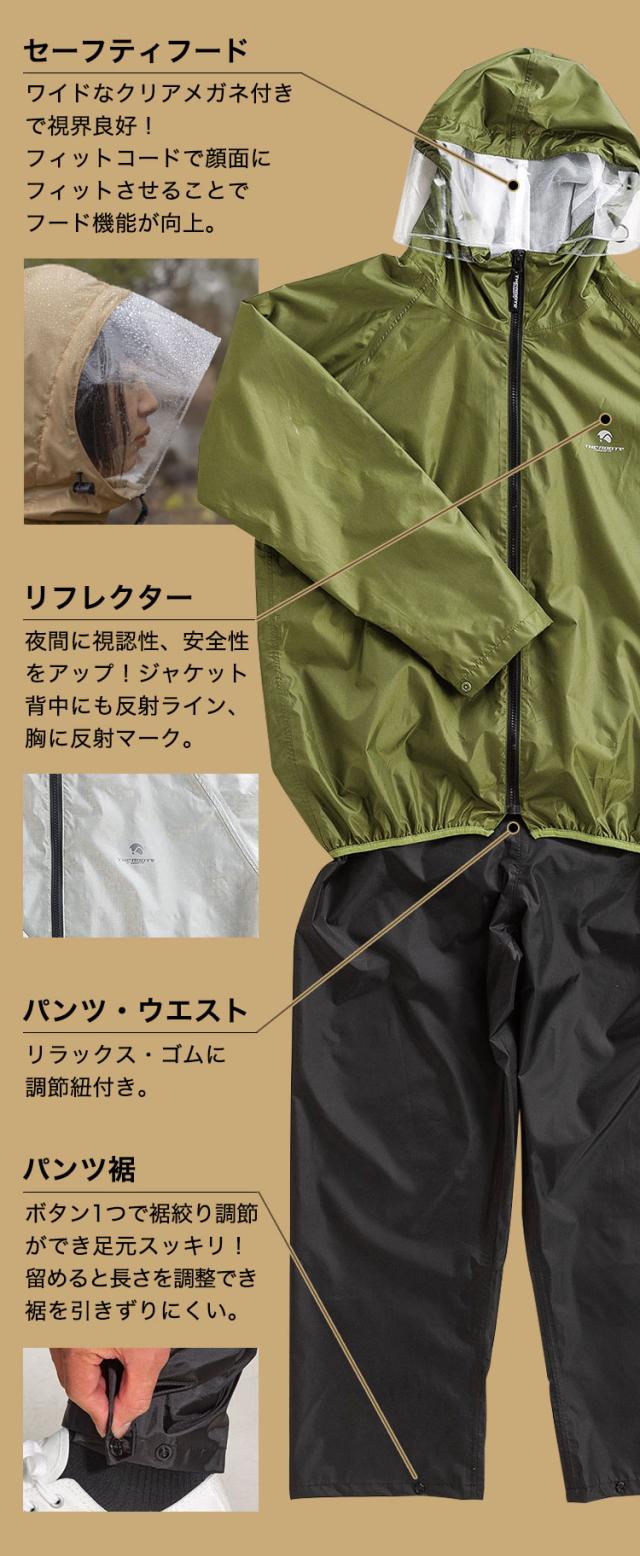 レインスーツ 上下セット | 40Lバッグ対応 回転フードレインスーツ |