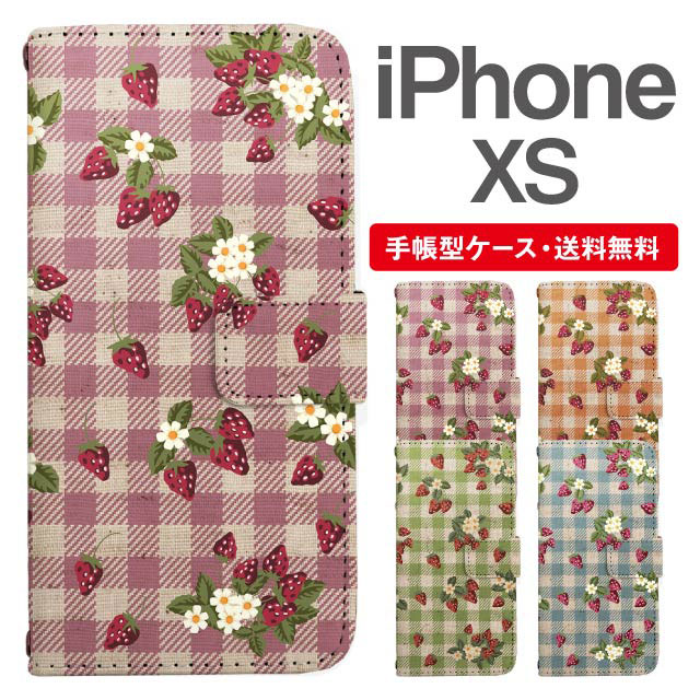 スマホケース 手帳型 iPhone XS アイフォン 携帯ケース カバー 送料無料 ストロベリー いちご フラワー ギンガムチェック agesugi_ssm