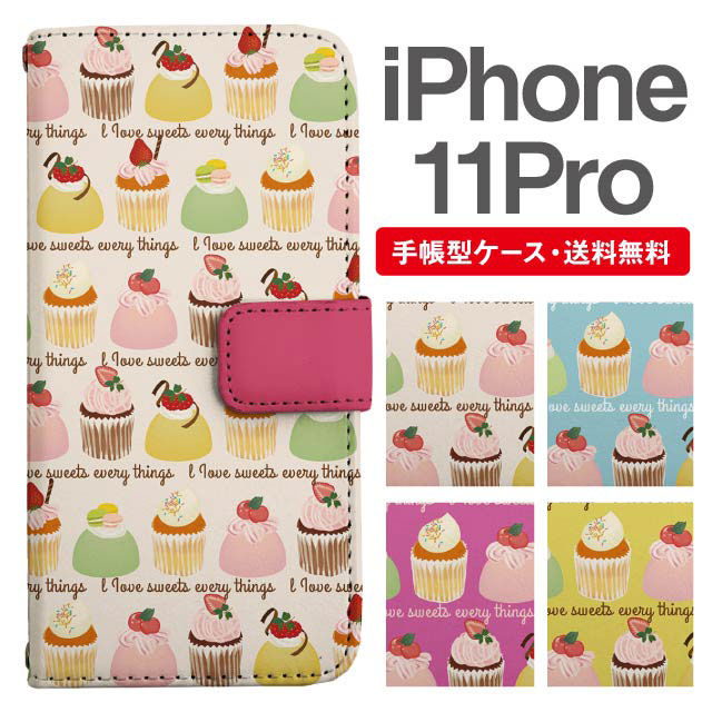 スマホケース 手帳型 iPhone 11 Pro アイフォン 携帯ケース カバー 送料無料 スイーツ柄 カップケーキ agesugi_ssm