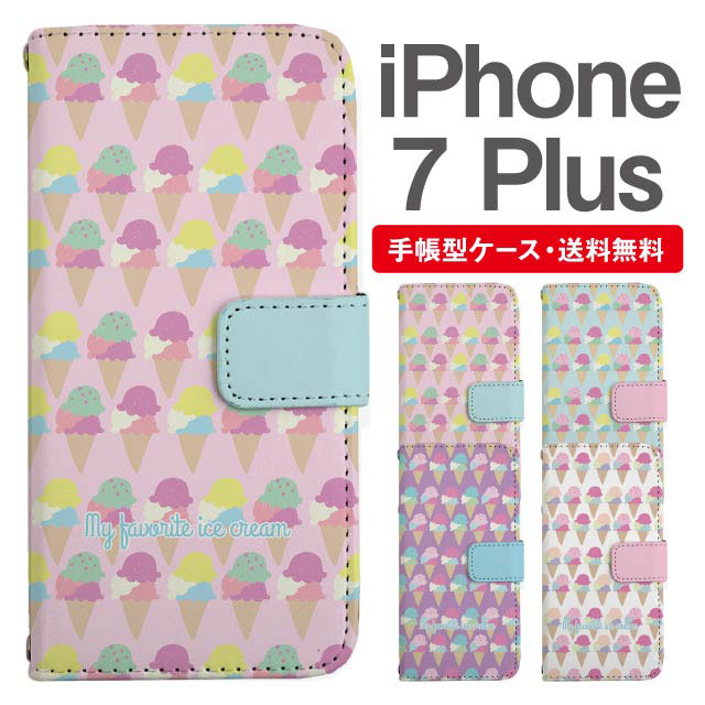 スマホケース 手帳型 iPhone7Plus アイフォン 携帯ケース カバー 送料無料 スイーツ柄 アイスクリーム ゆめかわ agesugi_ssm