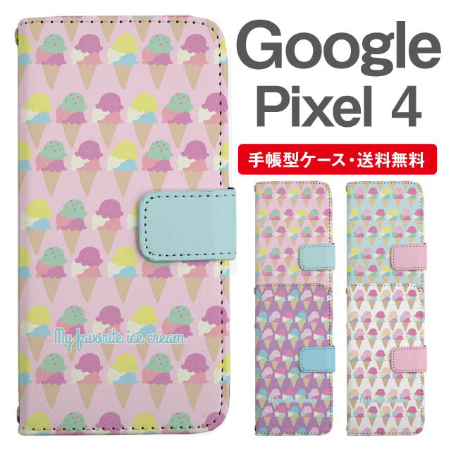 スマホケース 手帳型 Google Pixel4 グーグル ピクセル 携帯ケース カバー 送料無料 スイーツ柄 アイスクリーム ゆめかわ agesugi_ssm