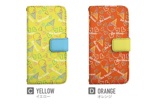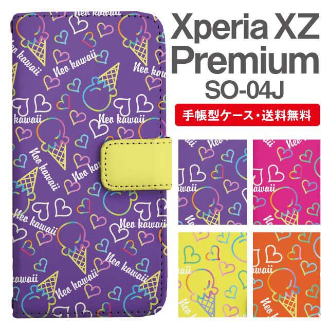 スマホケース 手帳型 Xperia XZ Premium エクスペリア SO-04J 携帯ケース カバー 送料無料 スイーツ柄 アイスクリーム ハート ネオン柄 agesugi_ssm