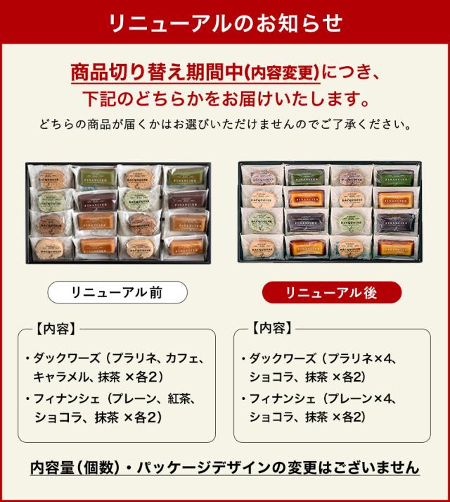 - 自宅用に購入しました。 ダックワーズもフィナンシェも大好きで、毎回違う味が楽しめて、しかもどれも美味しくて、しあわせなひとときを過ごせてます。 注文の翌々日には届いて対応も早く、進物でなくてもきちんと包装してくださってて、好感度も◎です!