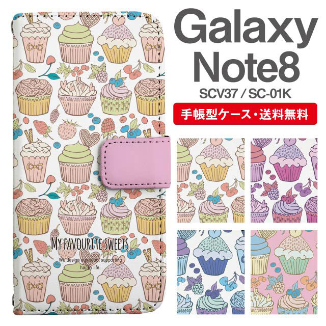 スマホケース 手帳型 Galaxy Note8 ギャラクシー SC-01K SCV37 携帯ケース カバー 送料無料 スイーツ柄 カップケーキ agesugi_ssm