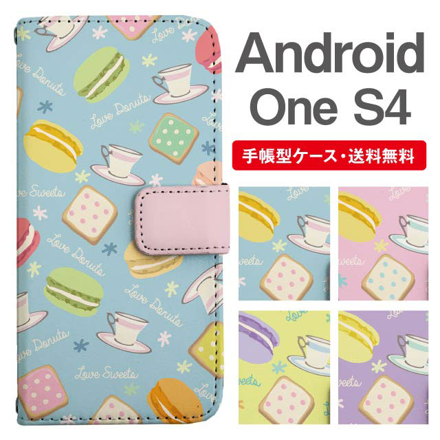スマホケース 手帳型 Android One S4 アンドロイドワン 携帯ケース カバー 送料無料 スイーツ柄 お菓子柄 カフェ柄 マカロン クッキー agesugi_ssm