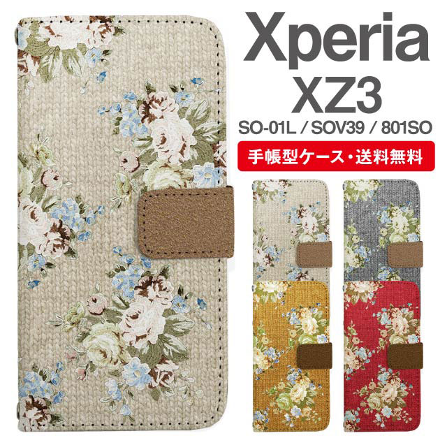 スマホケース 手帳型 Xperia XZ3 エクスペリア SO-01L SOV39 801SO 携帯ケース カバー 送料無料 花柄 フラワー ローズ バラ フェイクデザイン agesugi_ssm
