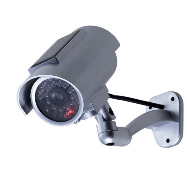 防犯のために欠かせなくなってきた防犯監視カメラを模造したダミーカメラです。デザインは、今、主流になりつつある形状に似せていて、非常にリアルにできてます。しかも、赤色LEDが点滅作動しているので本物そっくり。電源は、ソーラー充電式ですので頻繁に電池交換することもありません。あくまで、本物のように見せるのが目的の製品ですので、取り付けは外壁などの壁面にボルト付けします。設置には多少の苦労は必要ですが、その分、そのリアルさに感動。強烈に不審者、侵入者にアピールします。カメラの角度は、アームが本物のカメラと同じように向きを変えて設置できます。屋外に取り付けできる防水仕様(IPX3)です。