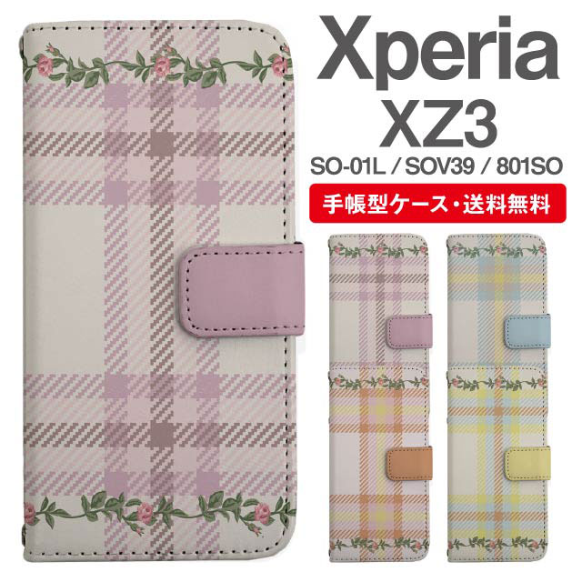 スマホケース 手帳型 Xperia XZ3 エクスペリア SO-01L SOV39 801SO 携帯ケース カバー 送料無料 花柄 フラワー ローズ バラ タータンチェック agesugi_ssm