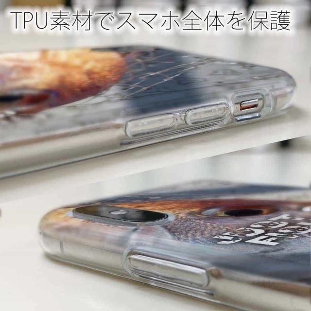 | ケースの素材について | 側面はゴムのように柔らかいTPU素材で、スマホ本体を守ります。万が一の落下でもケースが割れることがなく、耐久性の高いケースとなります。クリア(透明)のTPUケースにプリントしていますので、スマホ本体のカラーを活かしながらデザインケースが楽しめます。 |