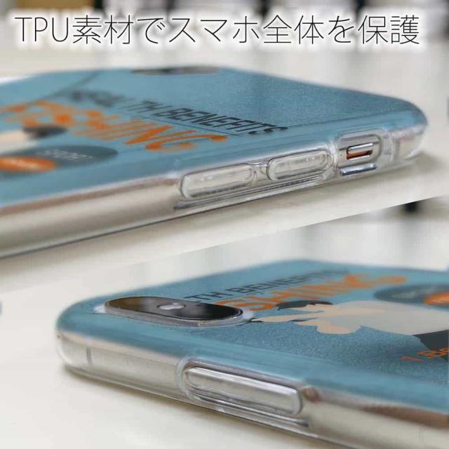 | ケースの素材について | 側面はゴムのように柔らかいTPU素材で、スマホ本体を守ります。万が一の落下でもケースが割れることがなく、耐久性の高いケースとなります。クリア(透明)のTPUケースにプリントしていますので、スマホ本体のカラーを活かしながらデザインケースが楽しめます。 |
