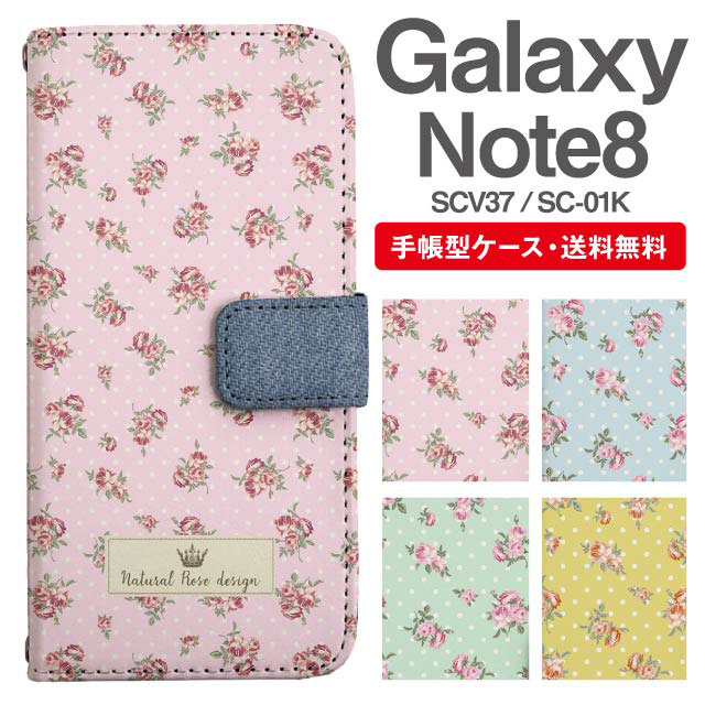 スマホケース 手帳型 Galaxy Note8 ギャラクシー SC-01K SCV37 携帯ケース カバー 送料無料 花柄 フラワー ローズ バラ ドット agesugi_ssm
