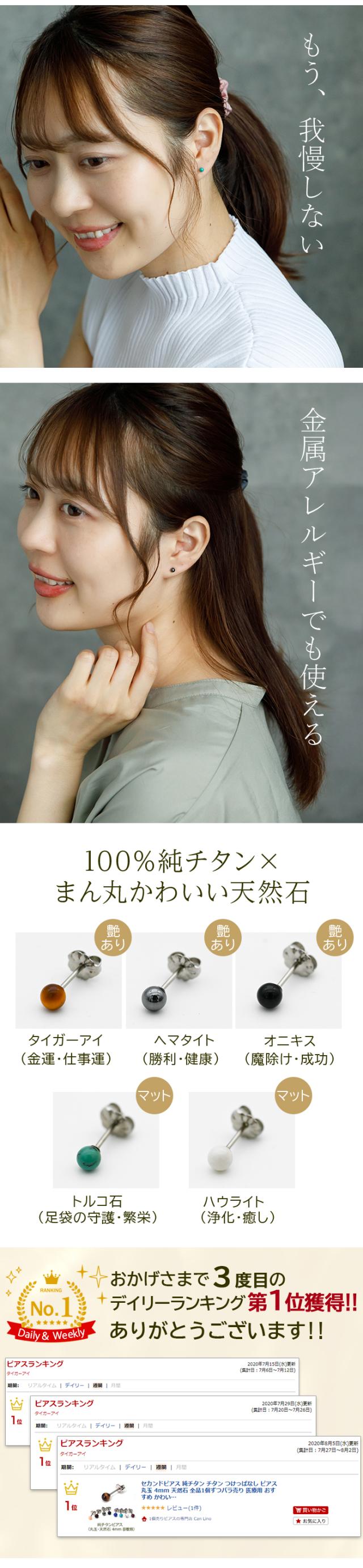 日本製!純チタン×天然石の丸玉セカンドピアス!