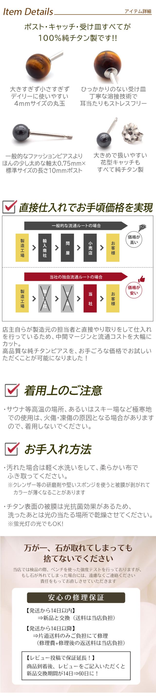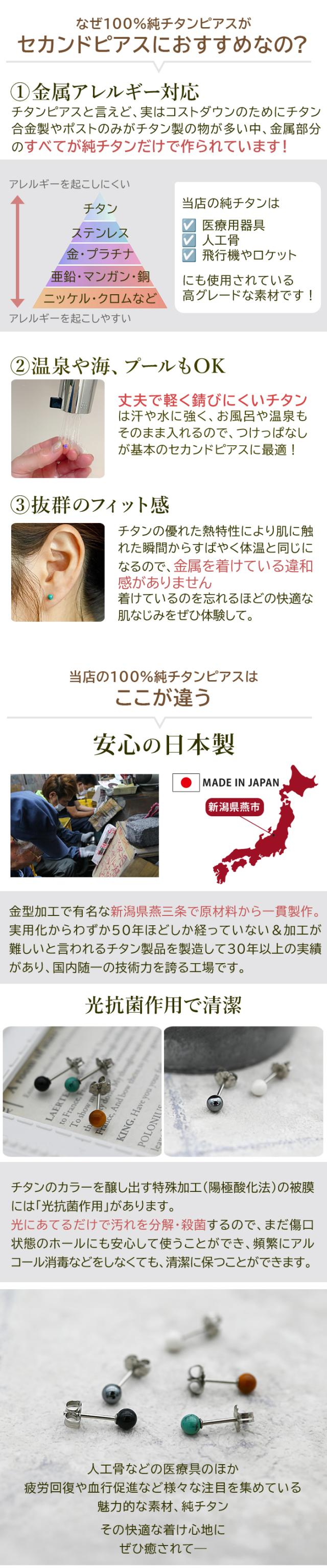 【燕三条製】セカンドピアス チタン つけっぱなし 純チタン 丸玉 4mm 天然石 全品1個ずつバラ売り 医療用 おすすめ かわいい シンプル 小さめ ミニ 極小 人気 メンズ レディース プレゼント