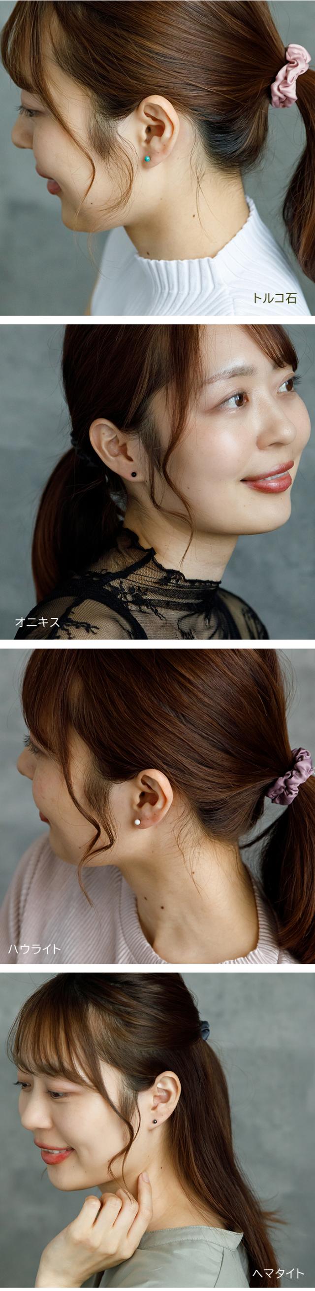 | セカンドピアス ピアス 純チタン チタン 丸玉 ボール 4mm 天然石 金属アレルギー対応 シンプル ひと粒 |