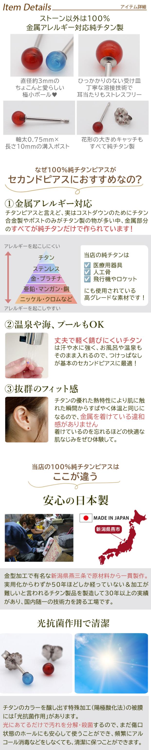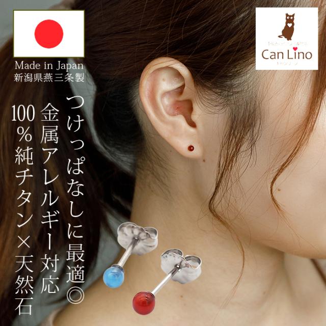 日本製!純チタン×天然石の丸玉セカンドピアス!